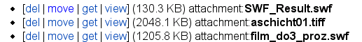 Um Dateianhänge in eine Seite einzufügen sollte unbedingt eine Angabe wie attachment:dateiname benutzt werden, wie sie auch in der folgenden Liste der Dateien erscheint. Es sollte niemals die URL des Verweises ("laden") kopiert werden, da sich diese jederzeit ändern kann und damit der Verweis auf die Datei brechen würde.Sie dürfen keine Anhänge an diese Seite anhängen!